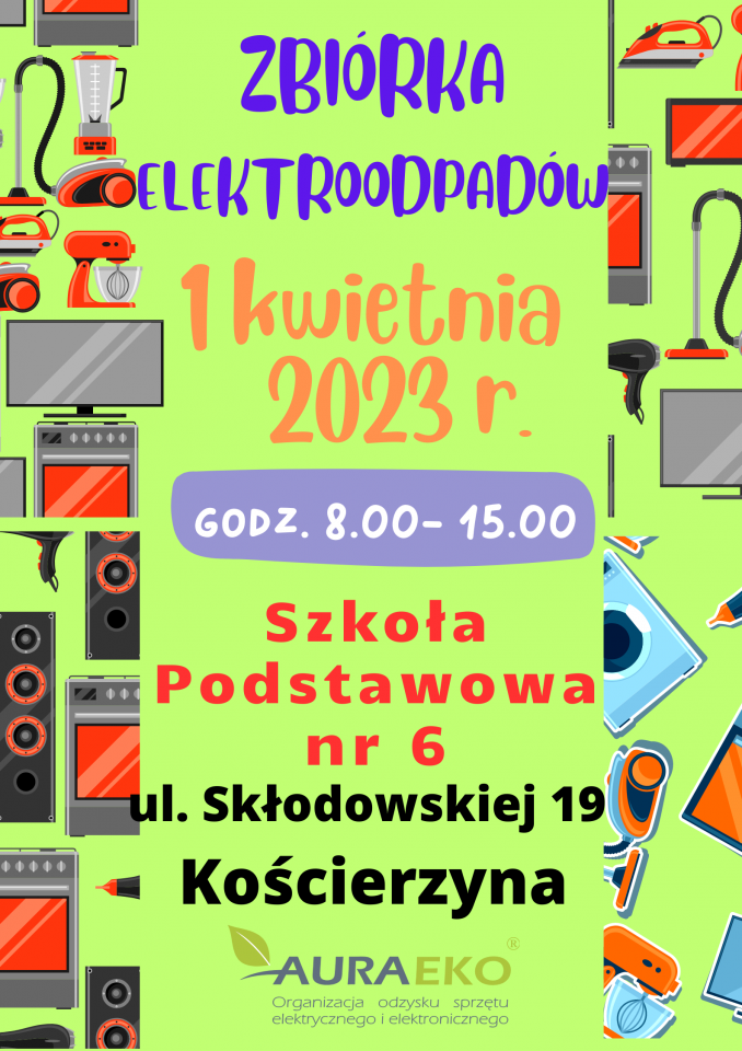 Masz w domu elektrośmieci? Oddaj je w sobotę 1 kwietnia 2023r. w godz. 8.00-15.00 przy parkingu Szkoły Podstawowej nr 6 w Kościerzynie (ul. Marii Skłodowskiej 19).